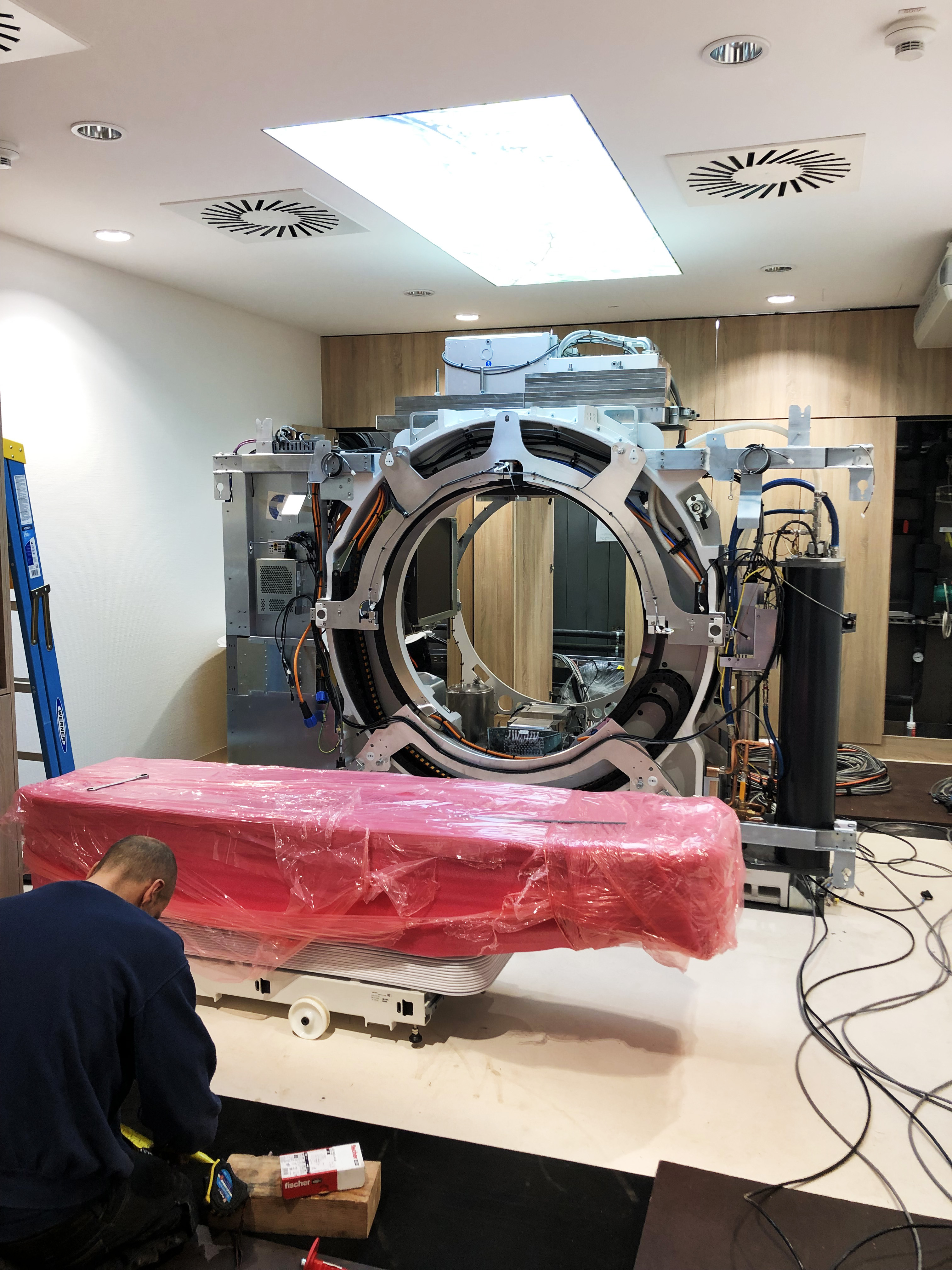- Mittels moderner Computertechnik fällt die bisherige langwierige Einstellungsphase weg und die Liegezeit für die Patienten wird auf ein Drittel verkürzt. Das ist wesentlich angenehmer für die Patienten während der Therapie. Hierdurch können außerdem mehr Menschen behandelt werden und die Wartezeit von Patienten auf eine Behandlung sinkt erheblich.